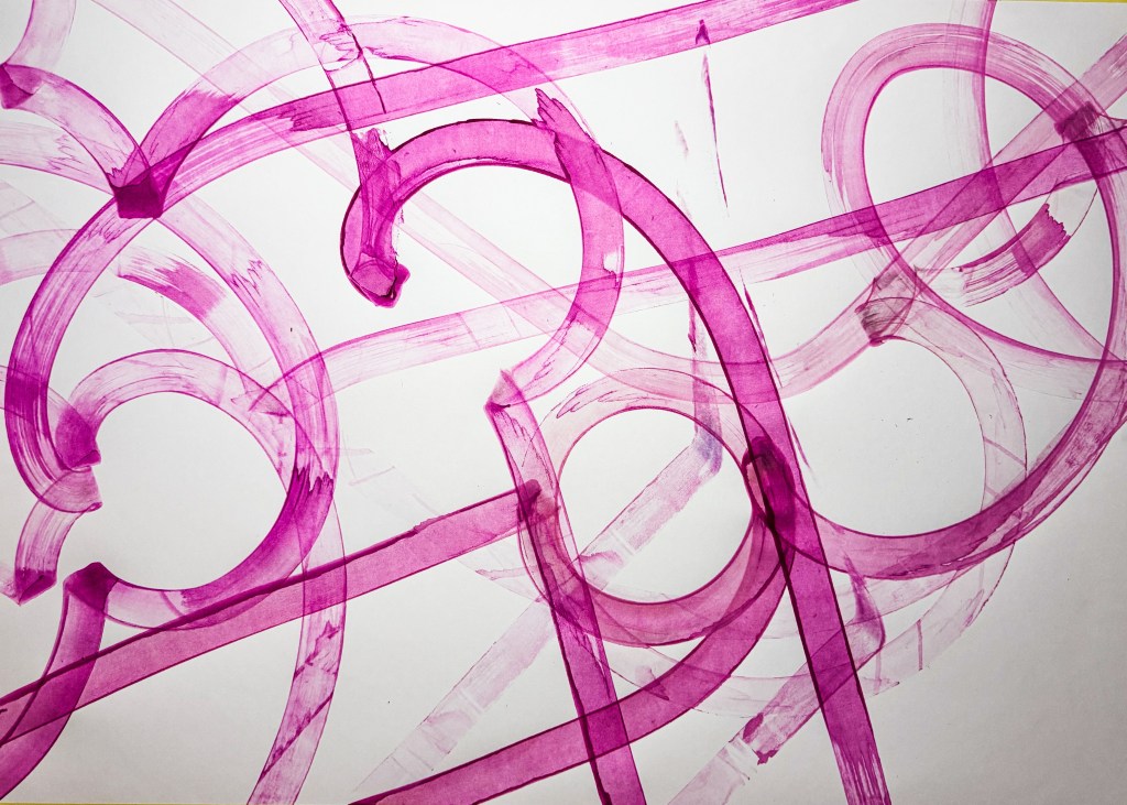 Manchmal fühlt es sich an wie ein Befreiungsakt. Was unausgesprochen bleibt, was im Inneren schwer wird, kann durch Bewegung hinausfliessen. Die Leinwand nimmt es auf, trägt es, bewahrt es. Andere Male ist es ein Fest, ein Ausdruck von Freude, der so stark ist, dass er geteilt werden will.